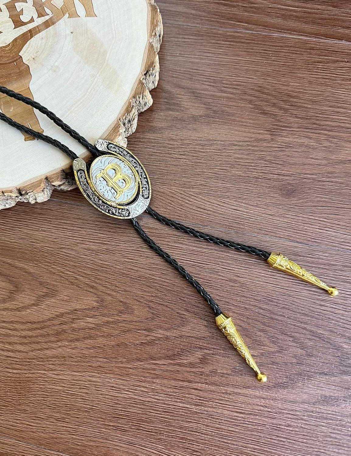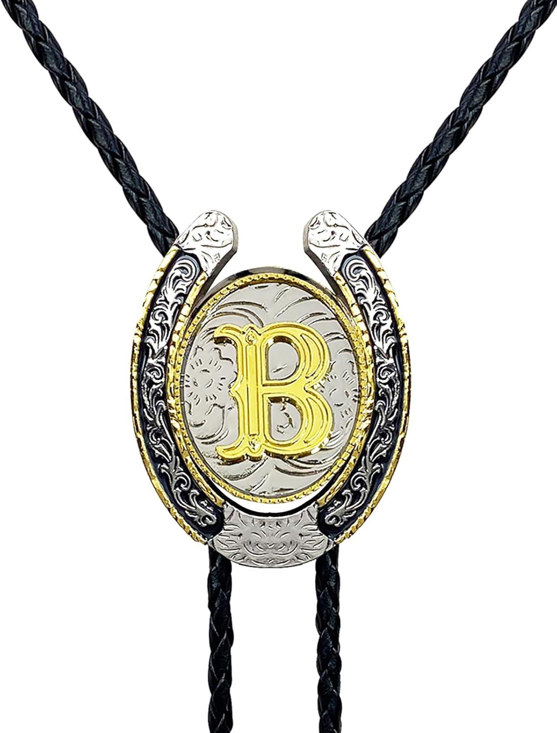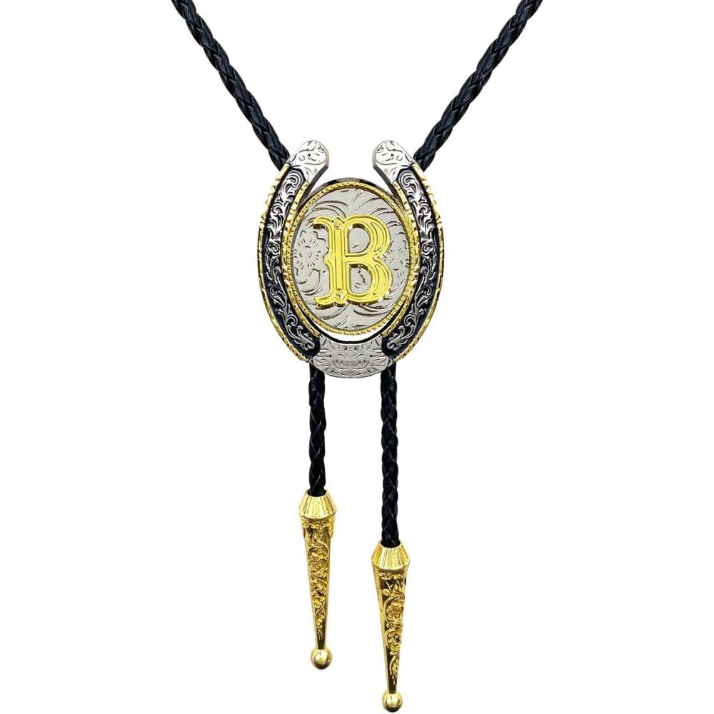 TOPACC Native American Bolo Tie for Men Women Gold Western Bolo Tie Initial Letter A To Z Vintage Cowboy Necklace(B)