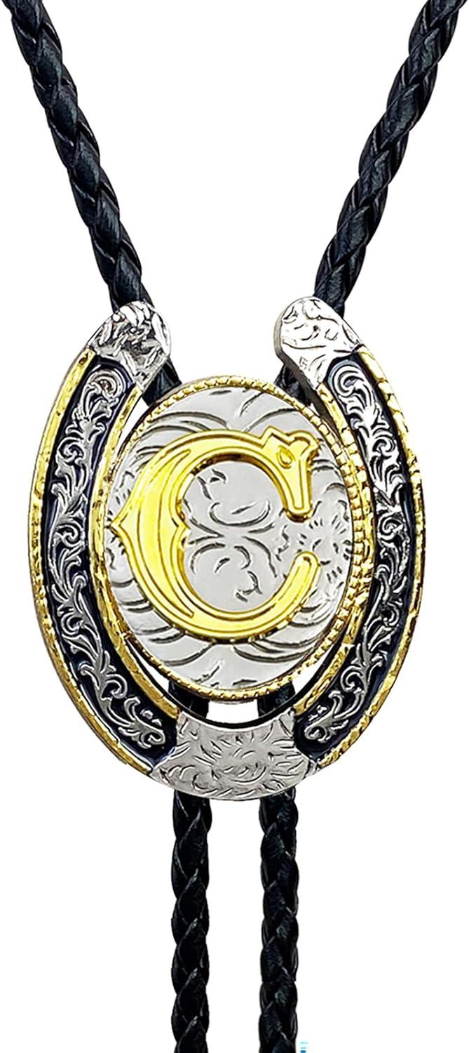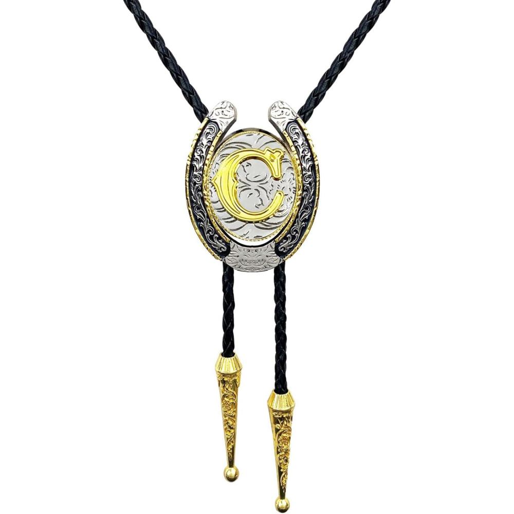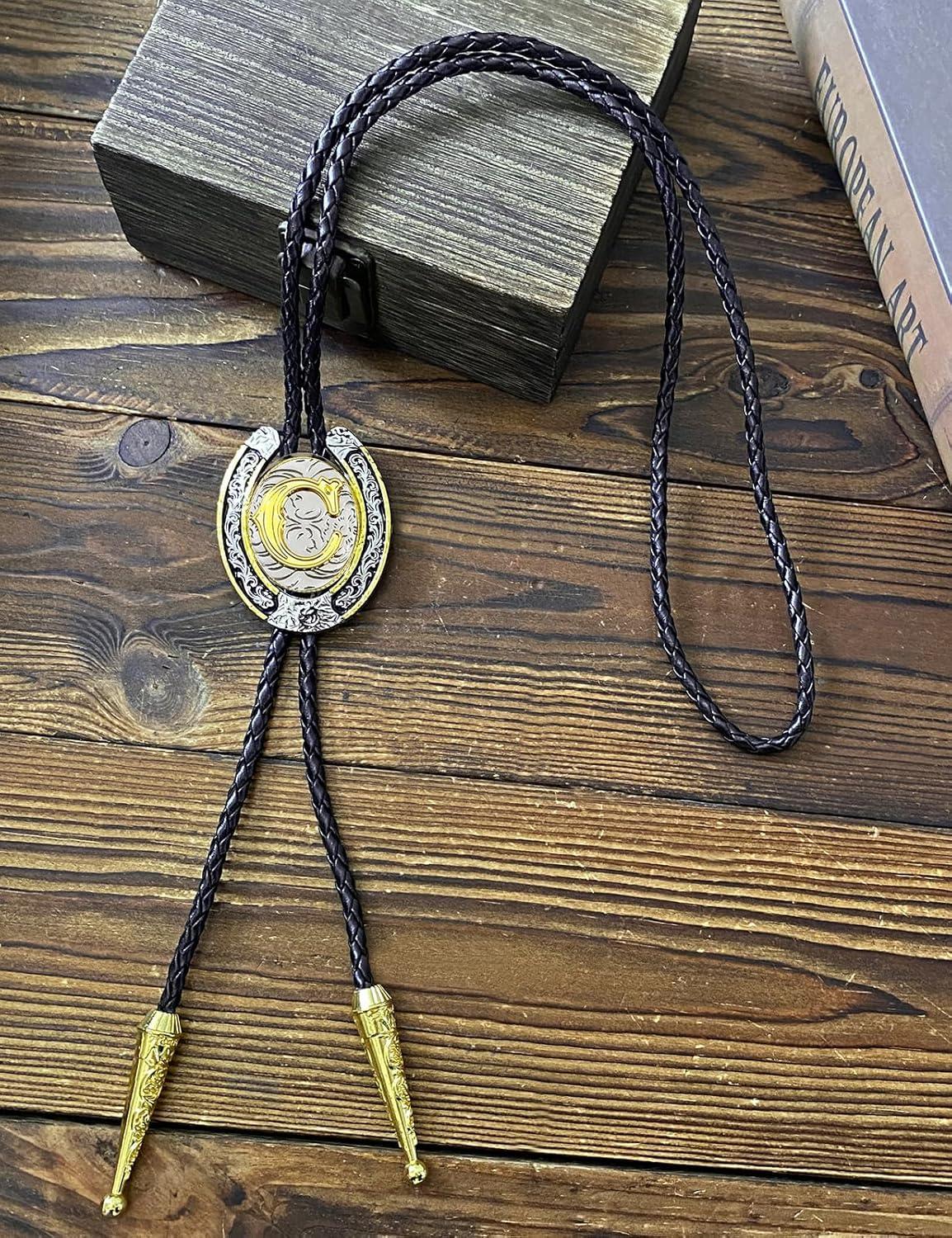 TOPACC Native American Bolo Tie for Men Women Gold Western Bolo Tie Initial Letter A To Z Vintage Cowboy Necklace(C)