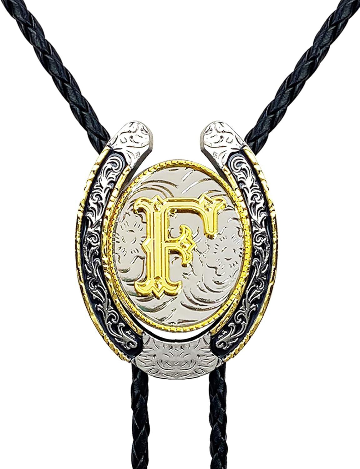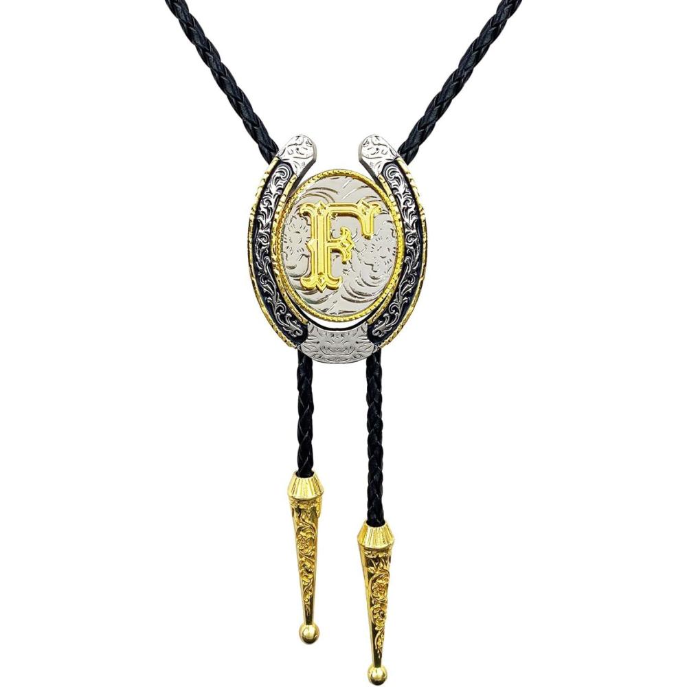 TOPACC Native American Bolo Tie for Men Women Gold Western Bolo Tie Initial Letter A To Z Vintage Cowboy Necklace(F)