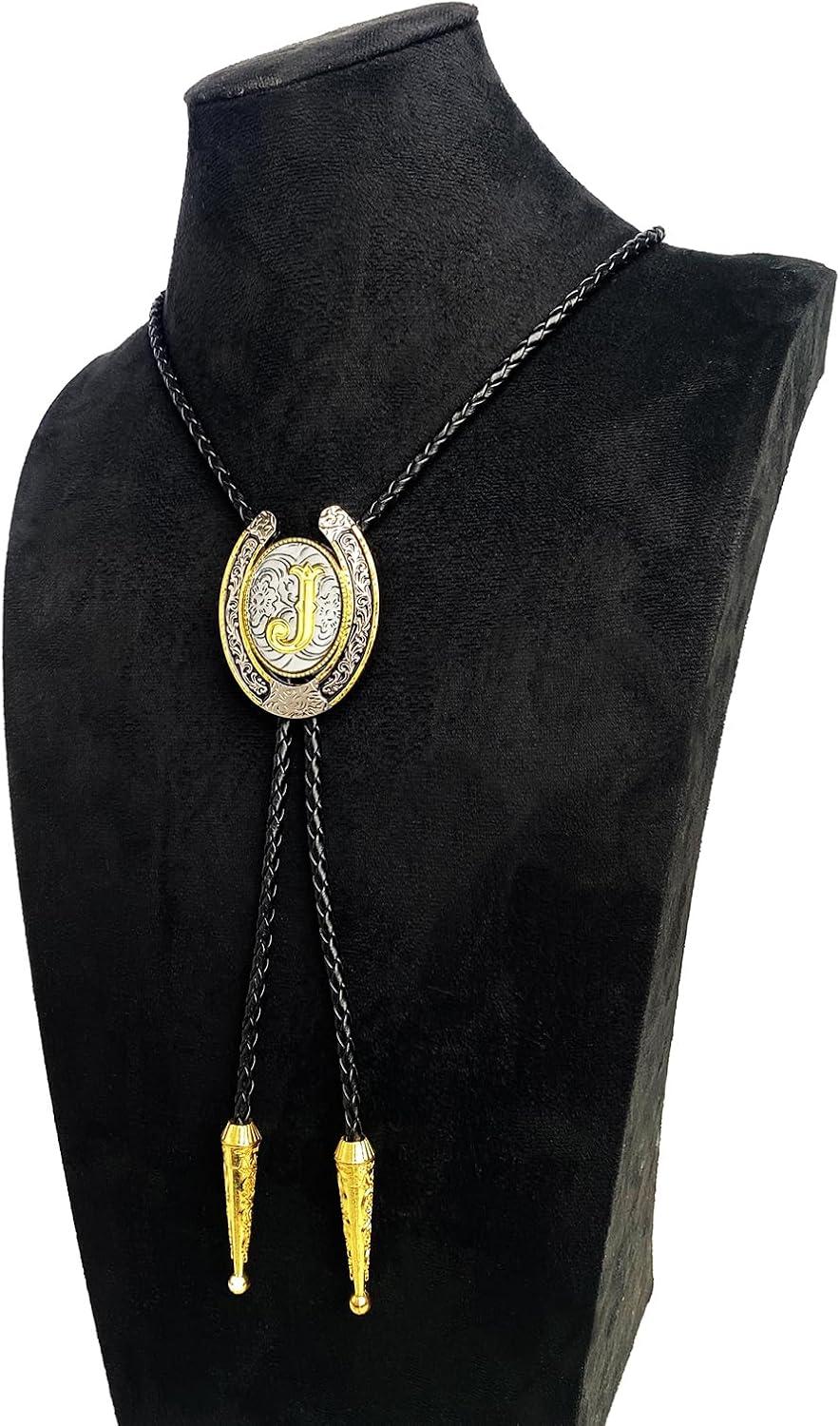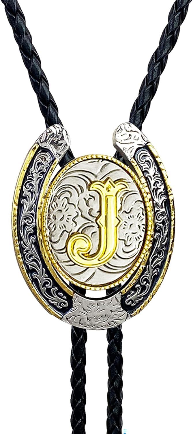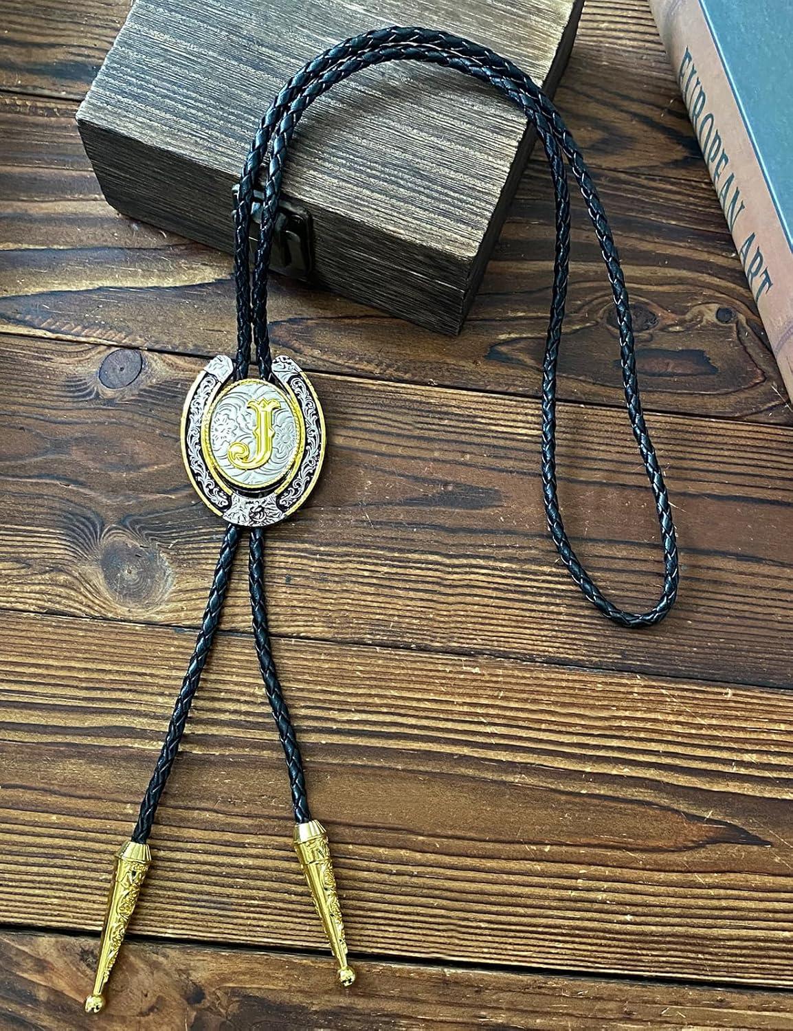TOPACC Native American Bolo Tie for Men Women Gold Western Bolo Tie Initial Letter A To Z Vintage Cowboy Necklace(J)