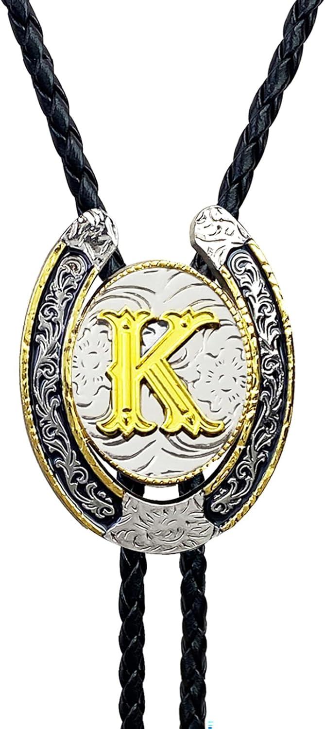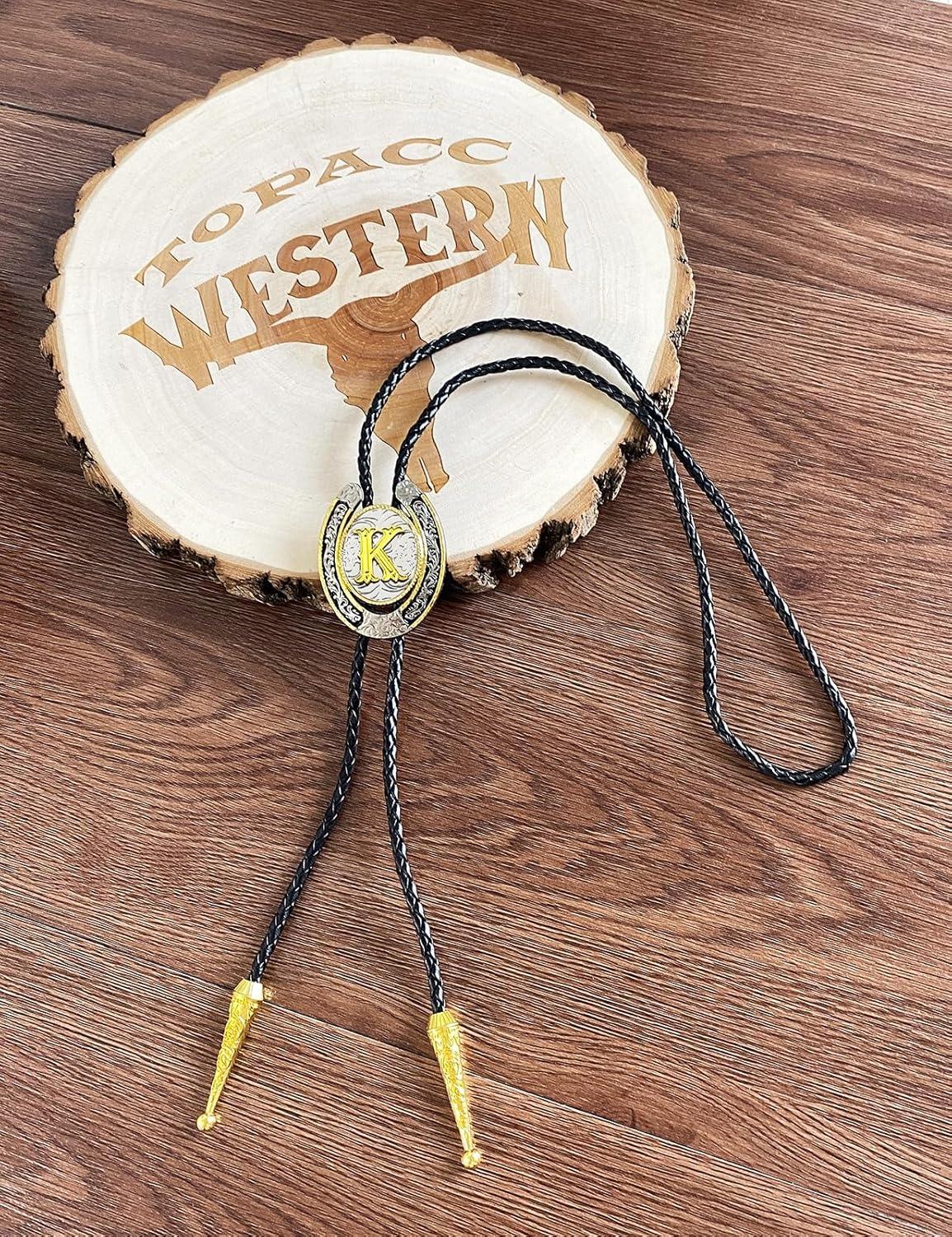 TOPACC Native American Bolo Tie for Men Women Gold Western Bolo Tie Initial Letter A To Z Vintage Cowboy Necklace(K)