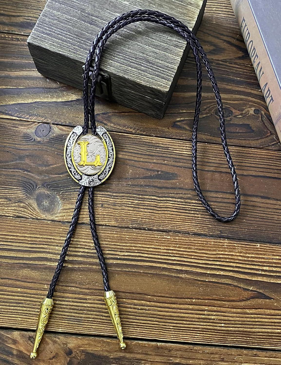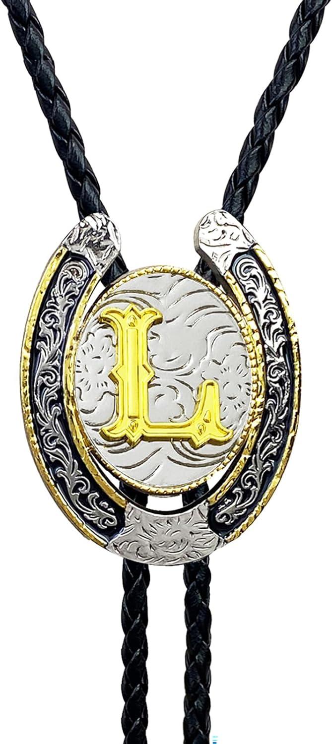 TOPACC Native American Bolo Tie for Men Women Gold Western Bolo Tie Initial Letter A To Z Vintage Cowboy Necklace(L)