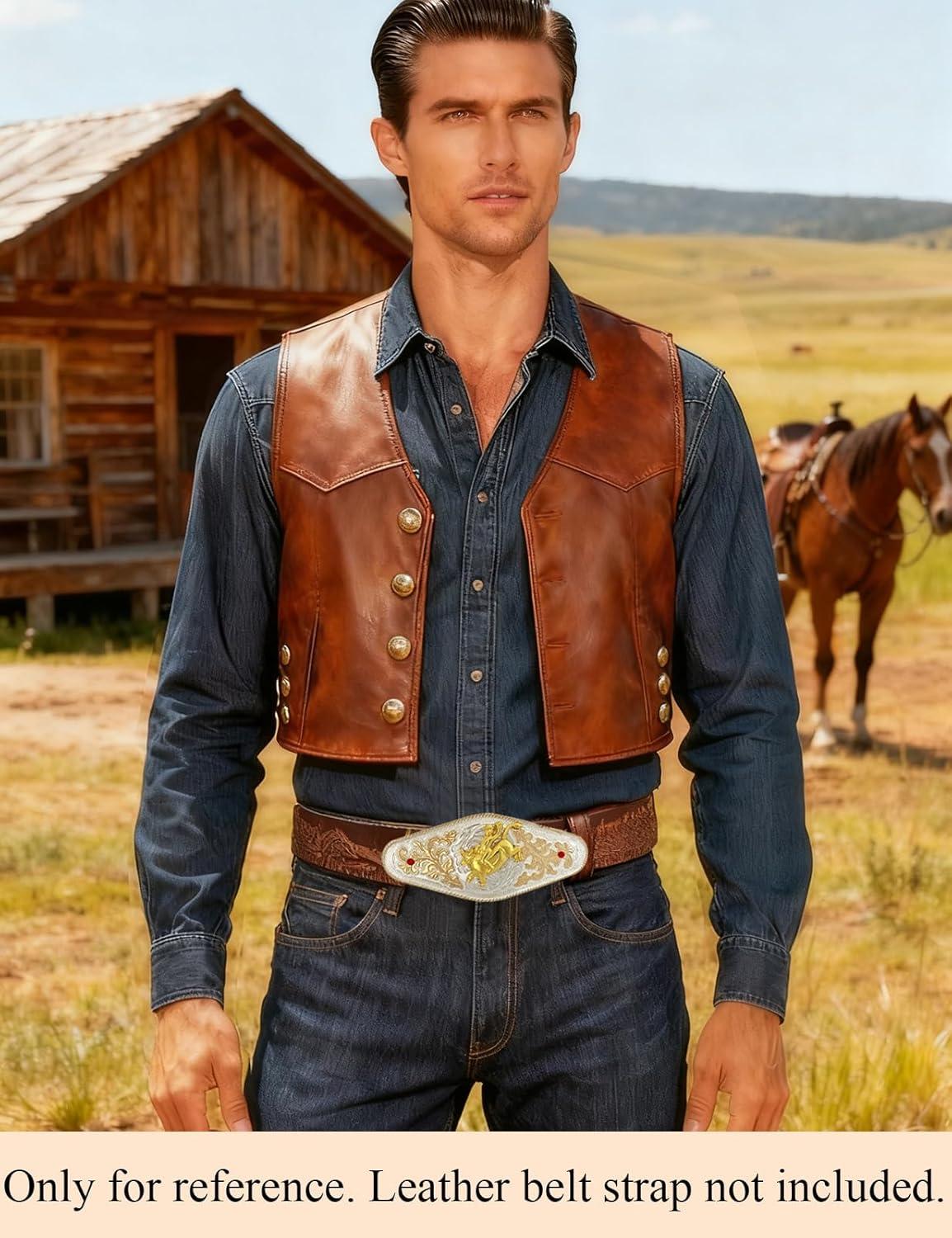 imageTOPACC Western Belt Buckle for Men Women Novelty Rodeo Cowgirl Cowboy Belt Buckle for Western Gift Fit 15 InchesC Silver Gold