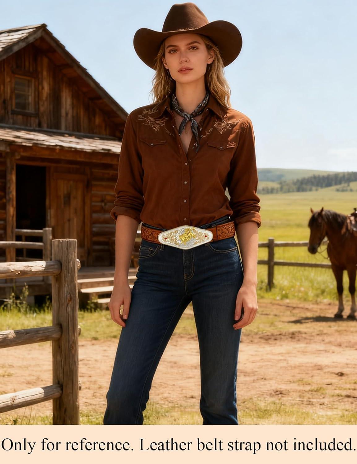 TOPACC Western Belt Buckle for Men Women Novelty Rodeo Cowgirl Cowboy Belt Buckle for Western Gift Fit 1.5 Inches(C Silver Gold)