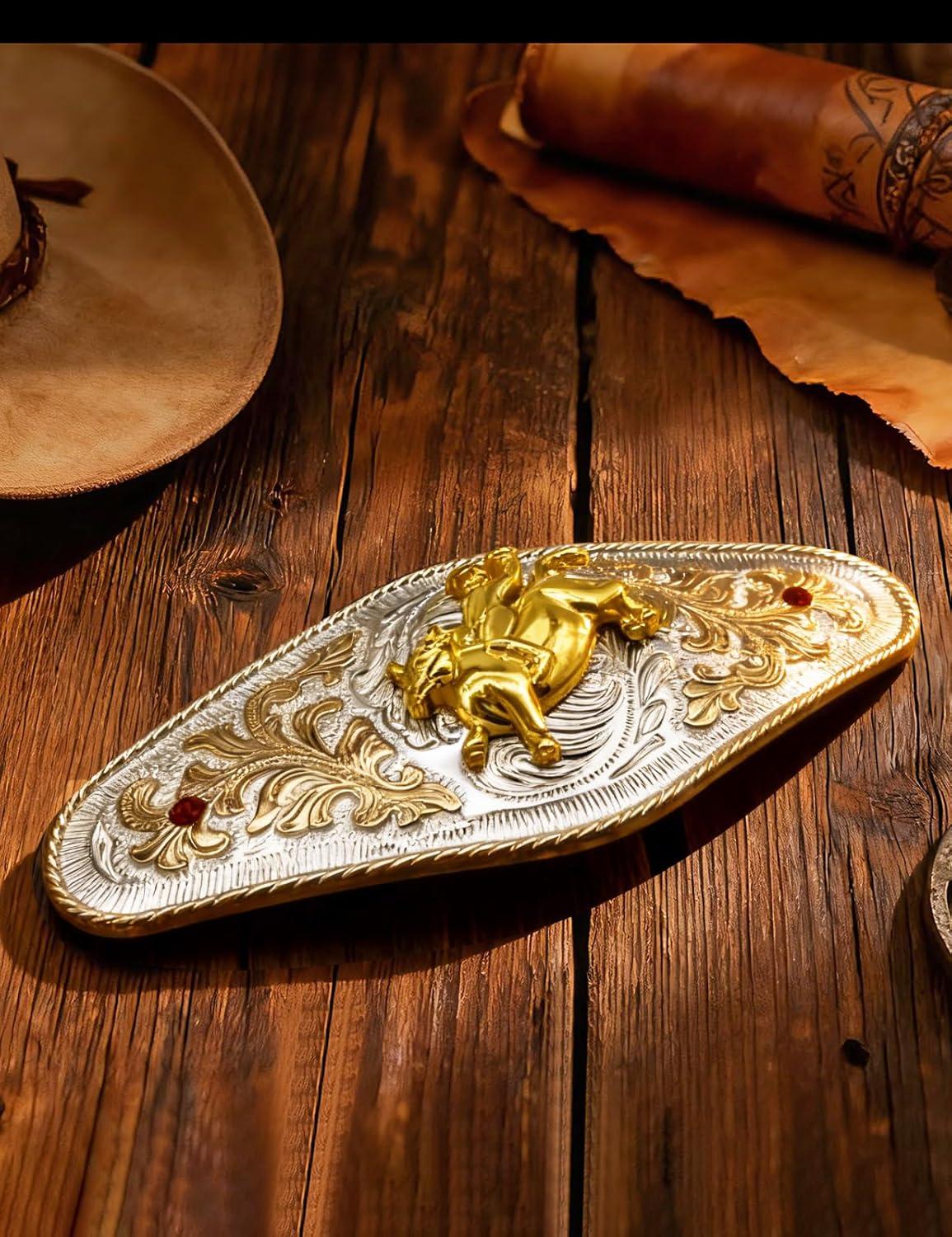 TOPACC Western Belt Buckle for Men Women Novelty Rodeo Cowgirl Cowboy Belt Buckle for Western Gift Fit 1.5 Inches(D Silver Gold)