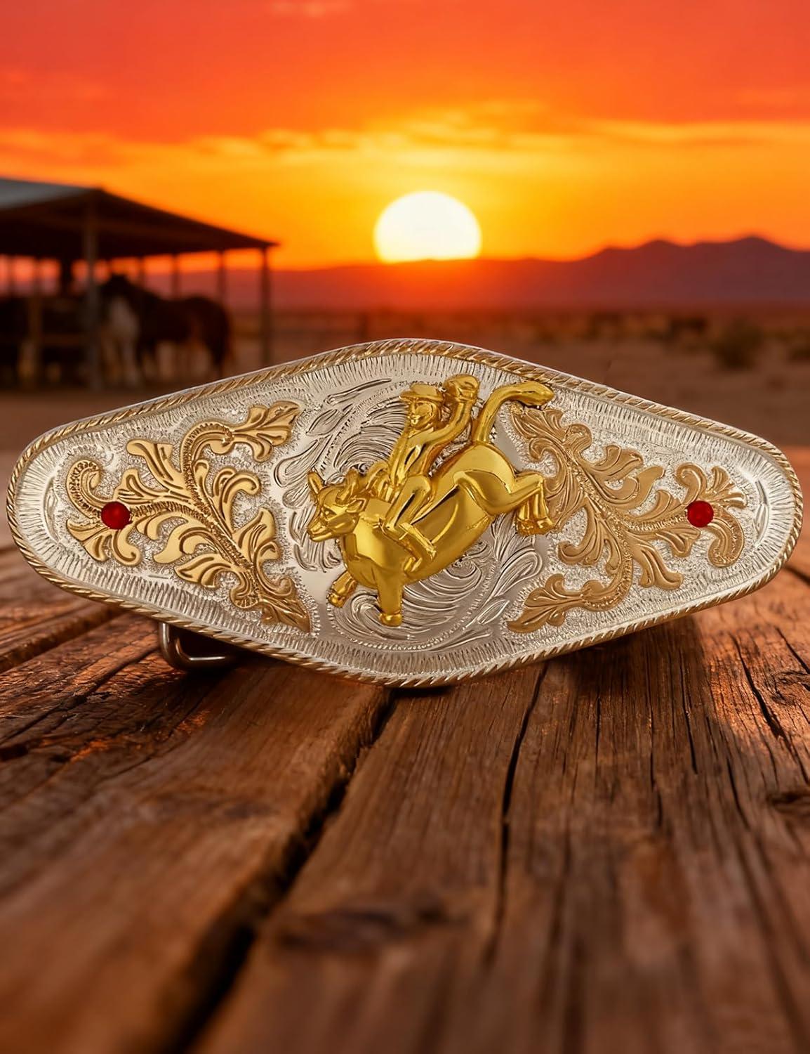 TOPACC Western Belt Buckle for Men Women Novelty Rodeo Cowgirl Cowboy Belt Buckle for Western Gift Fit 1.5 Inches(E Silver Gold)