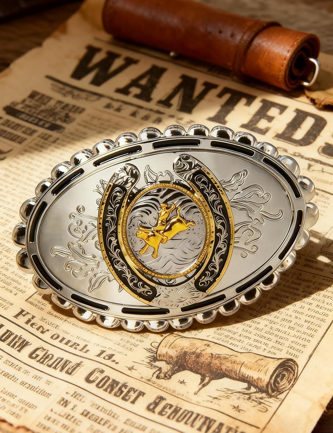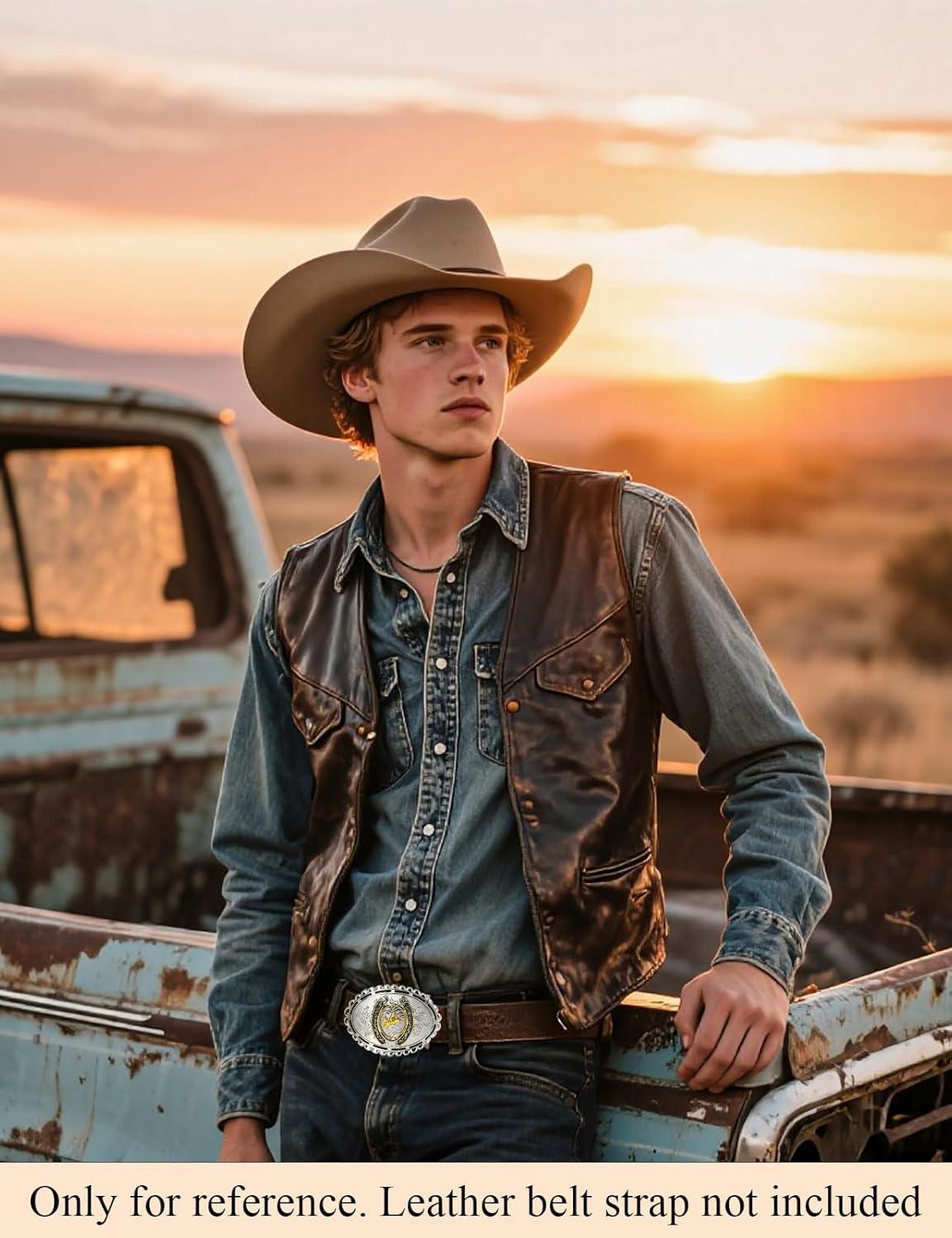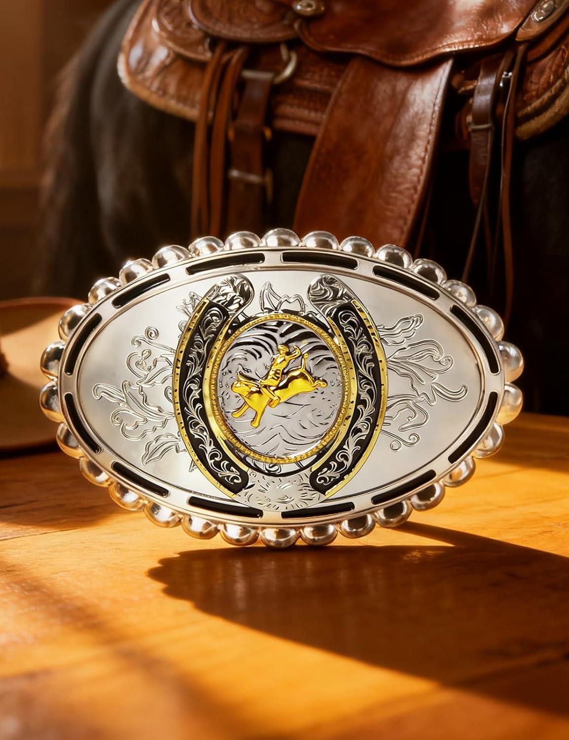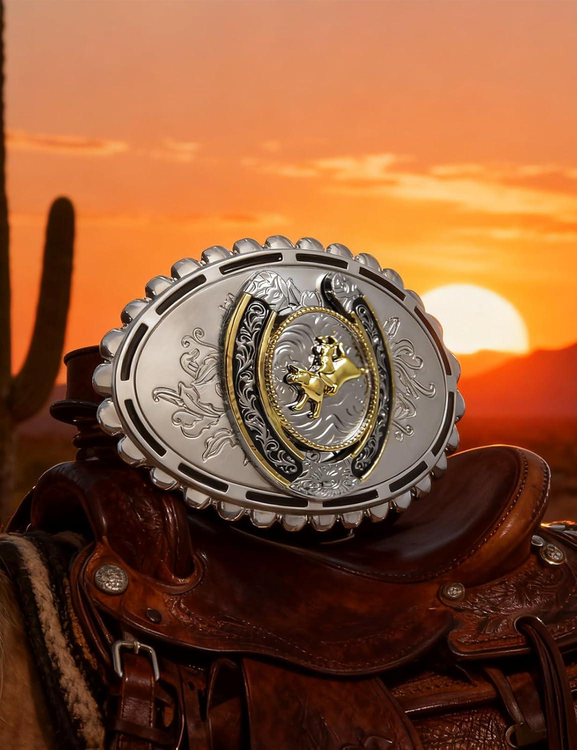 TOPACC Western Belt Buckle for Men Women Novelty Rodeo Cowgirl Cowboy Belt Buckle for Western Gift Fit 1.5 Inches(K Silver Gold)