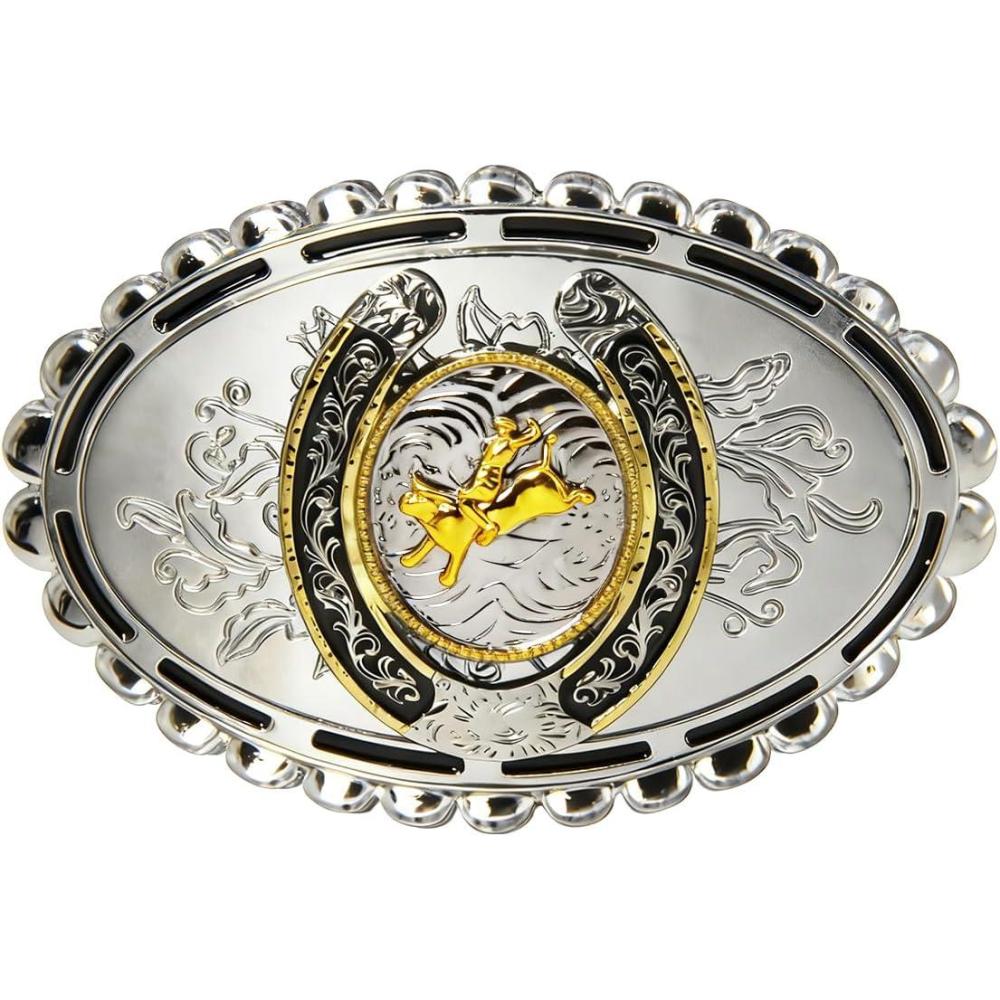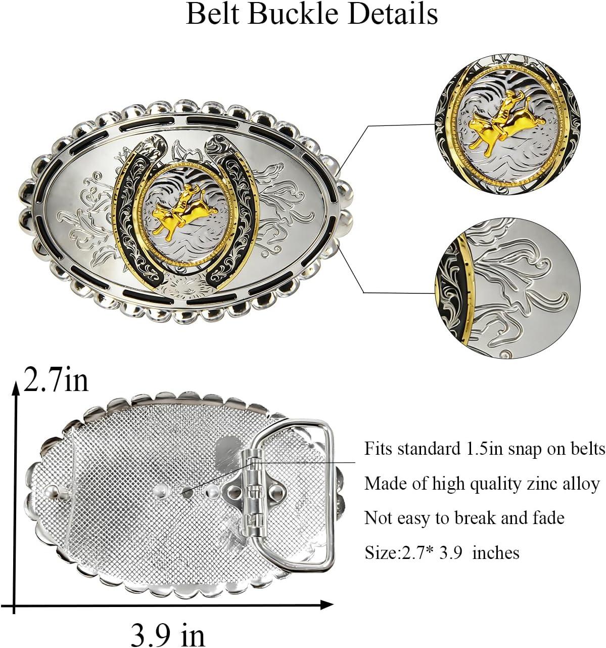 TOPACC Western Belt Buckle for Men Women Novelty Rodeo Cowgirl Cowboy Belt Buckle for Western Gift Fit 1.5 Inches(J Silver Gold)