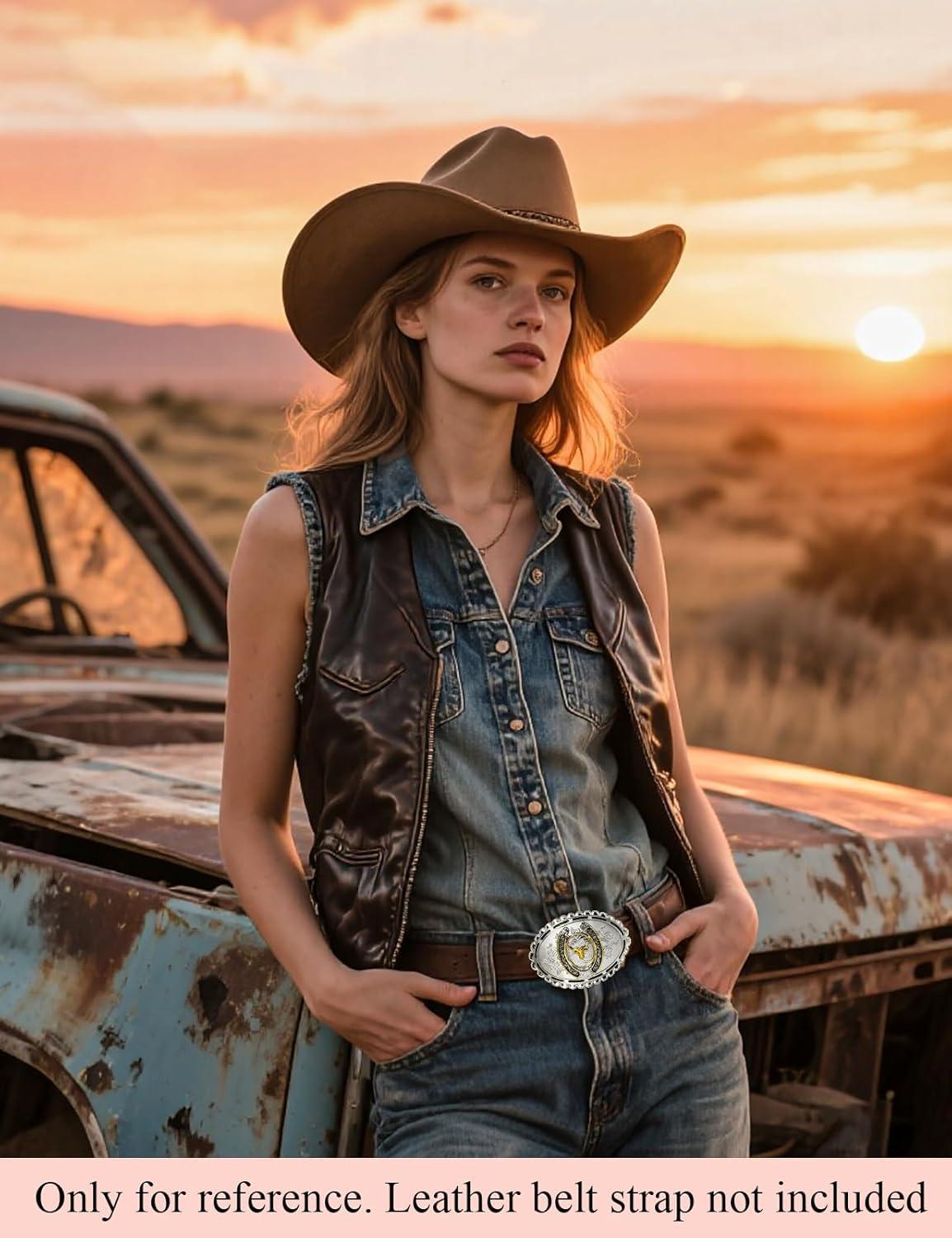 TOPACC Western Belt Buckle for Men Women Novelty Rodeo Cowgirl Cowboy Belt Buckle for Western Gift Fit 1.5 Inches(M Silver)