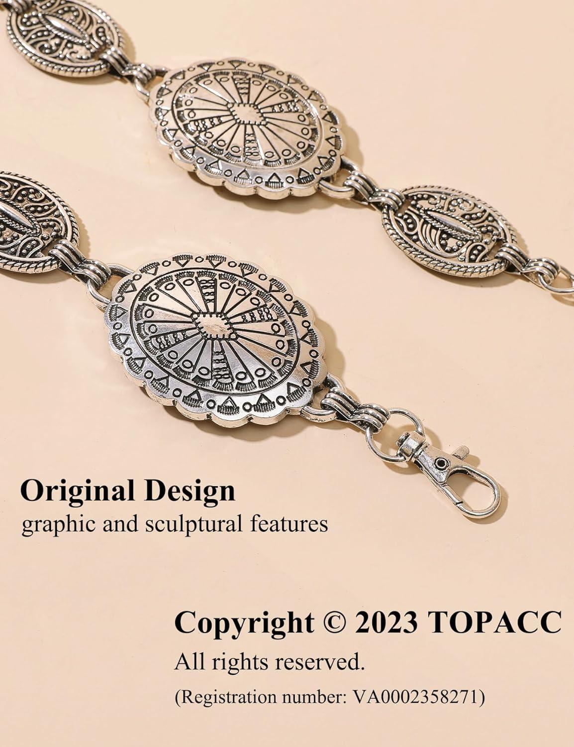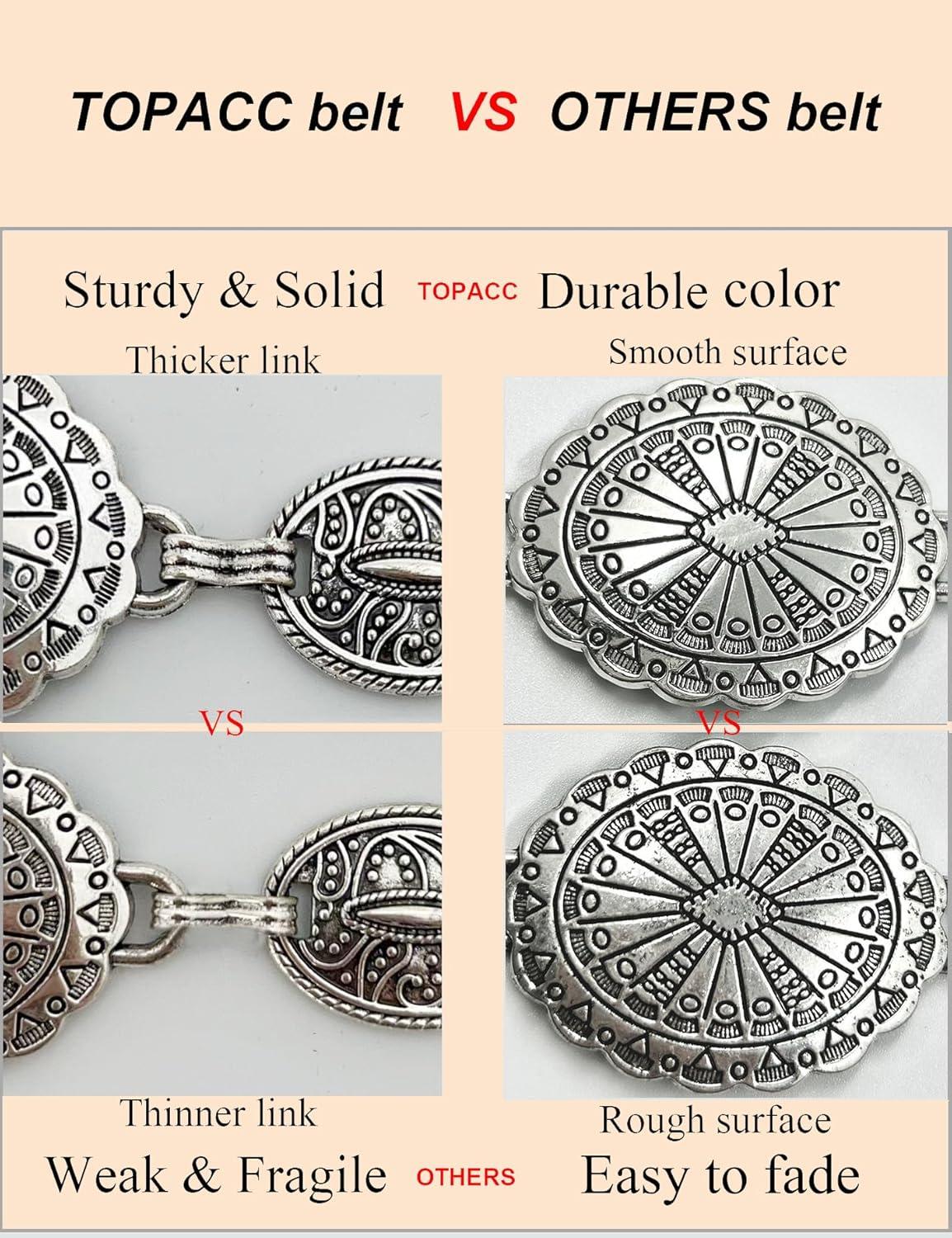 imageTOPACC Western Metal Concho Belt for Women Cowgirl Chain Belts for Dresses Jeans Country Concert OutfitAnticopper217