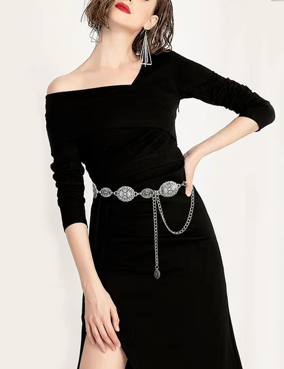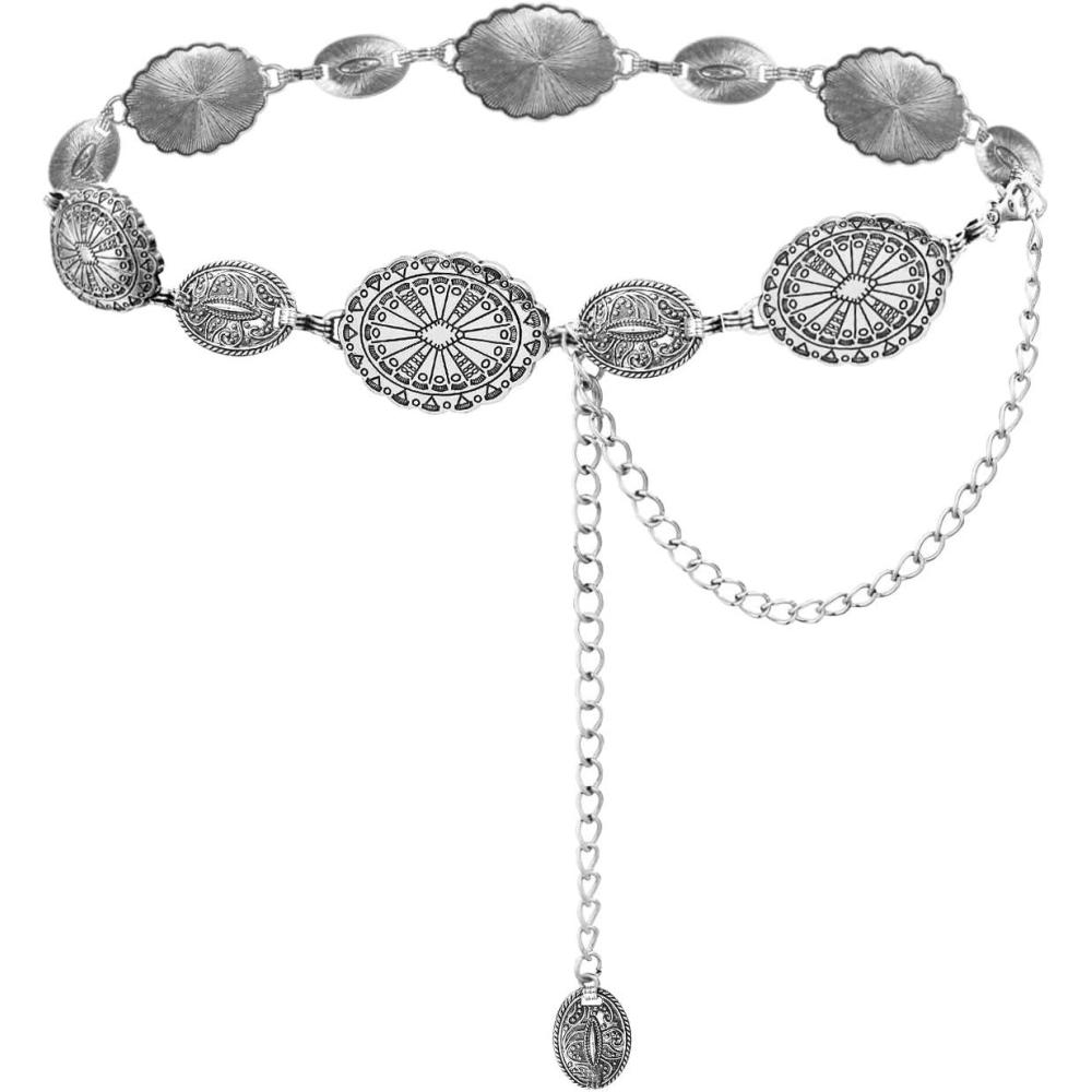 TOPACC Western Metal Concho Belt for Women Cowgirl Chain Belts for Dresses Jeans Country Concert Outfit(1silver)