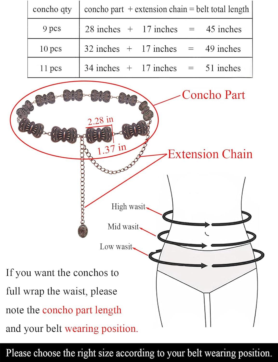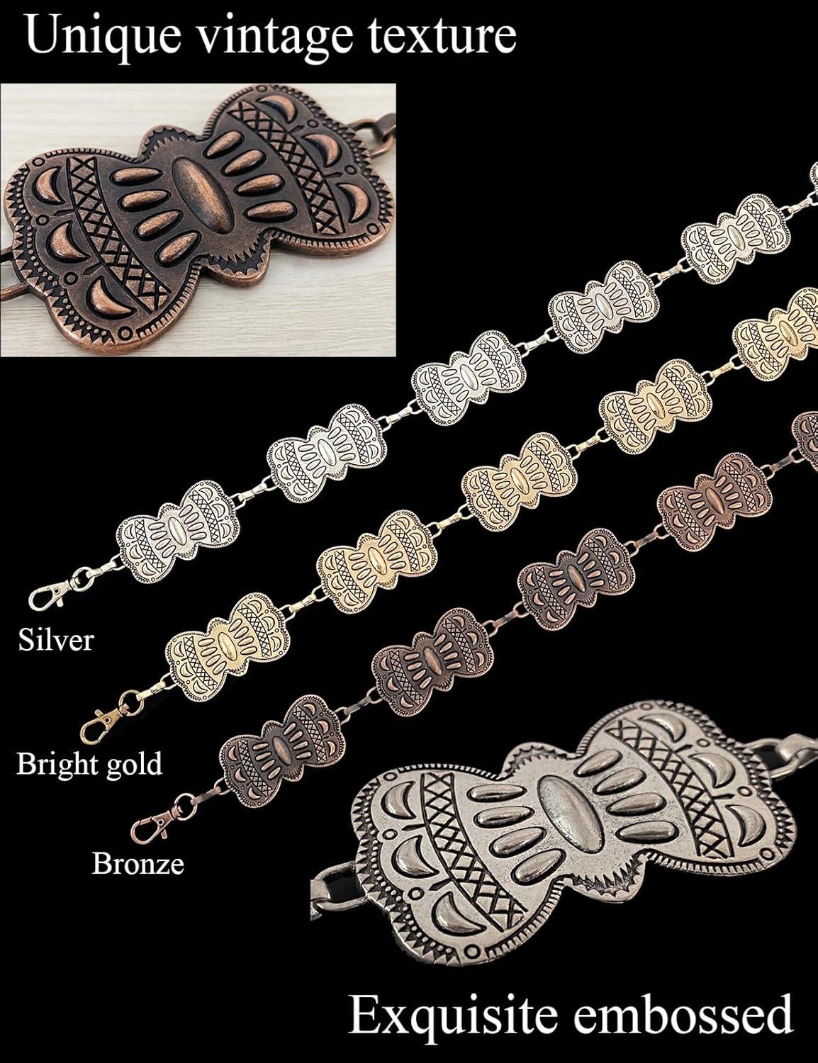 TOPACC Western Metal Concho Belt for Women Cowgirl Chain Belts for Dresses Jeans Country Concert Outfit(Anti-copper-217)