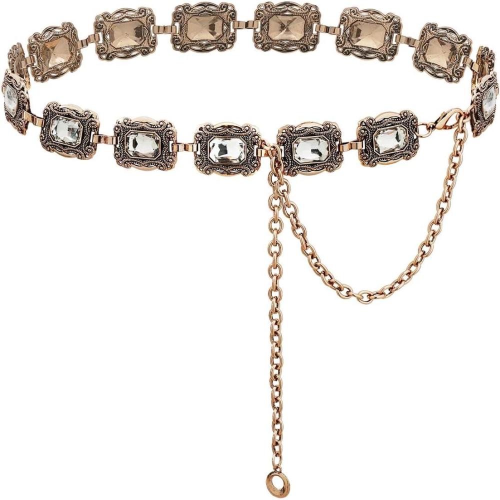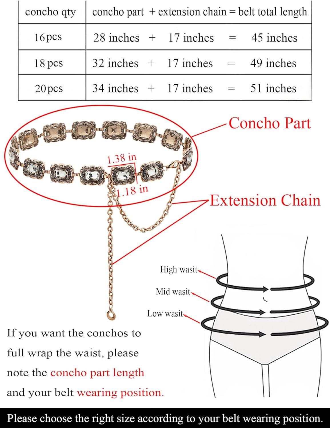TOPACC Western Metal Concho Belt for Women Cowgirl Chain Belts for Dresses Jeans Country Concert Outfit(Brass Gold-226)