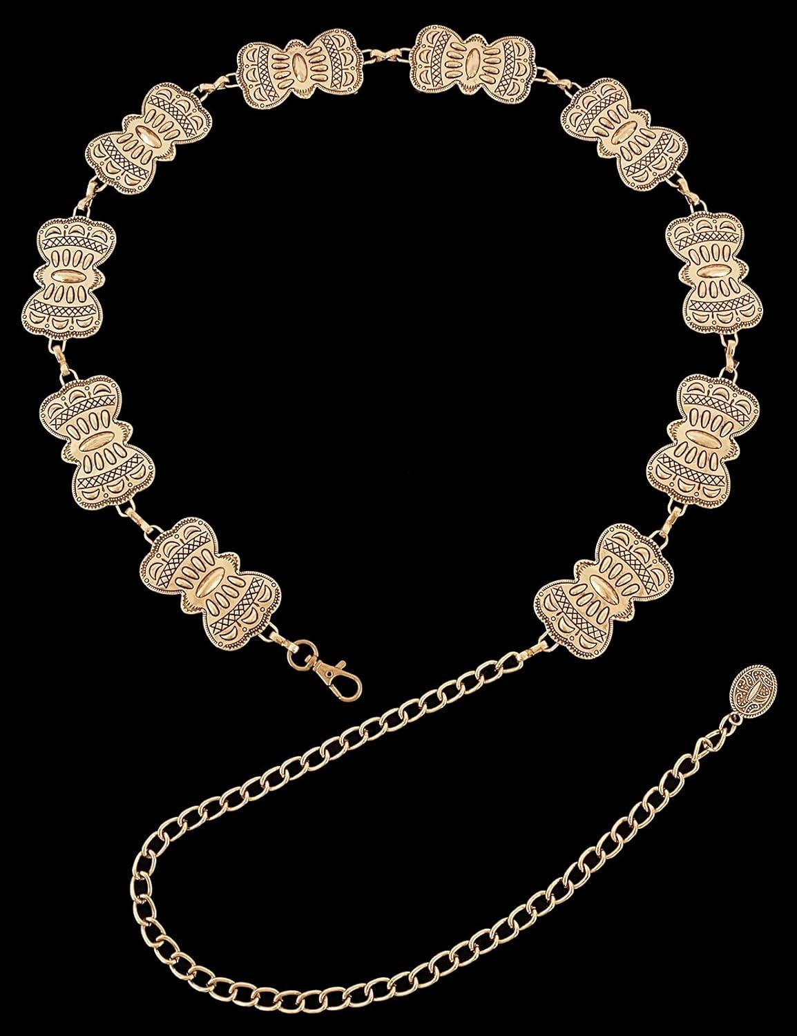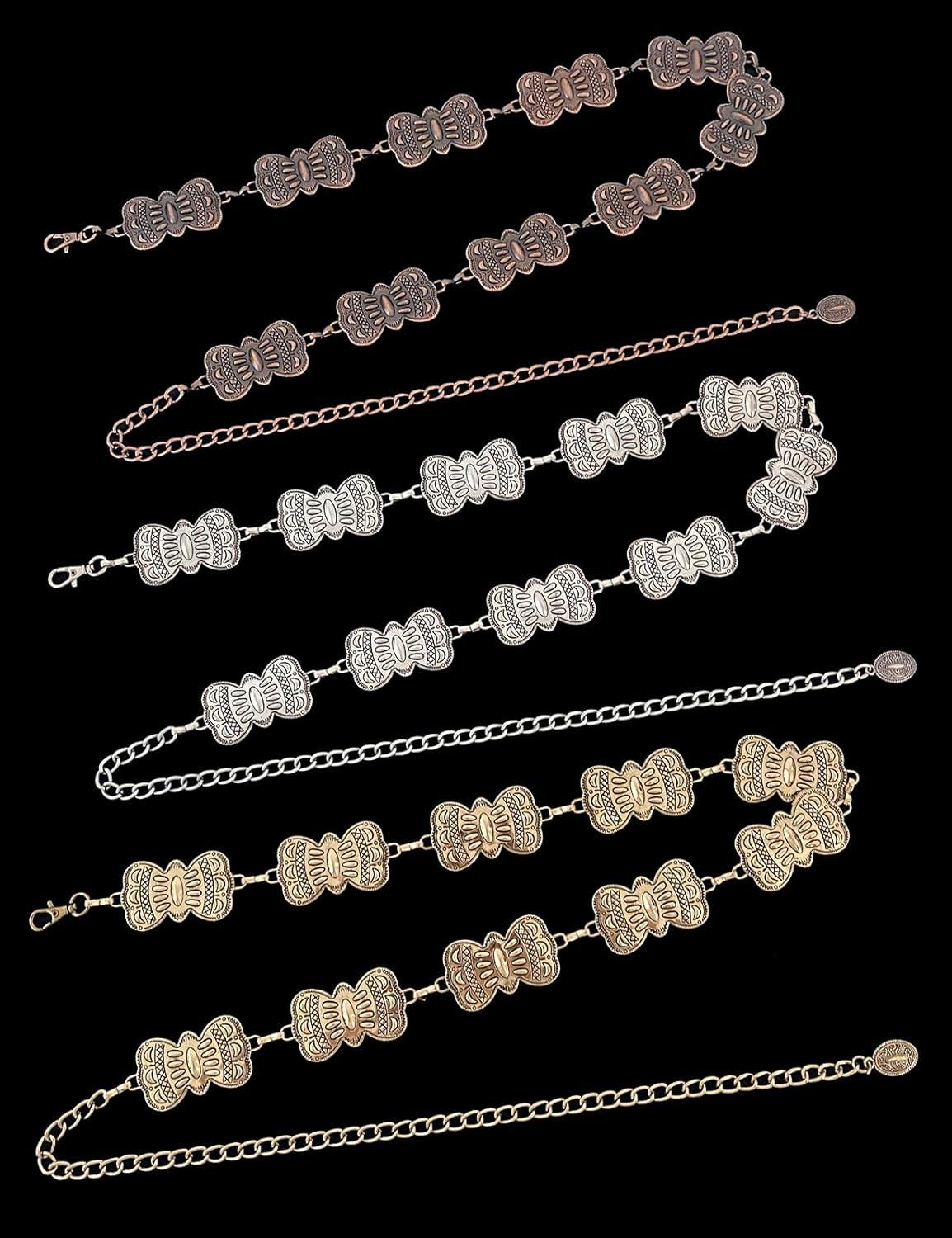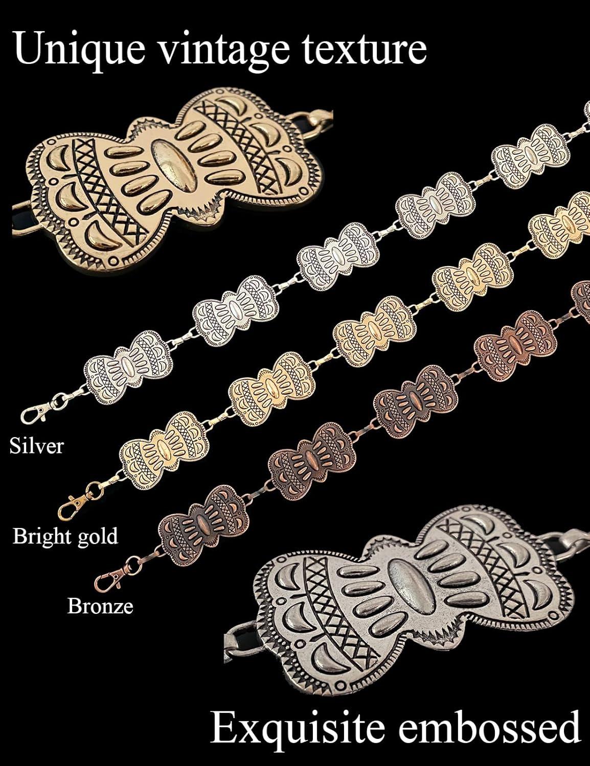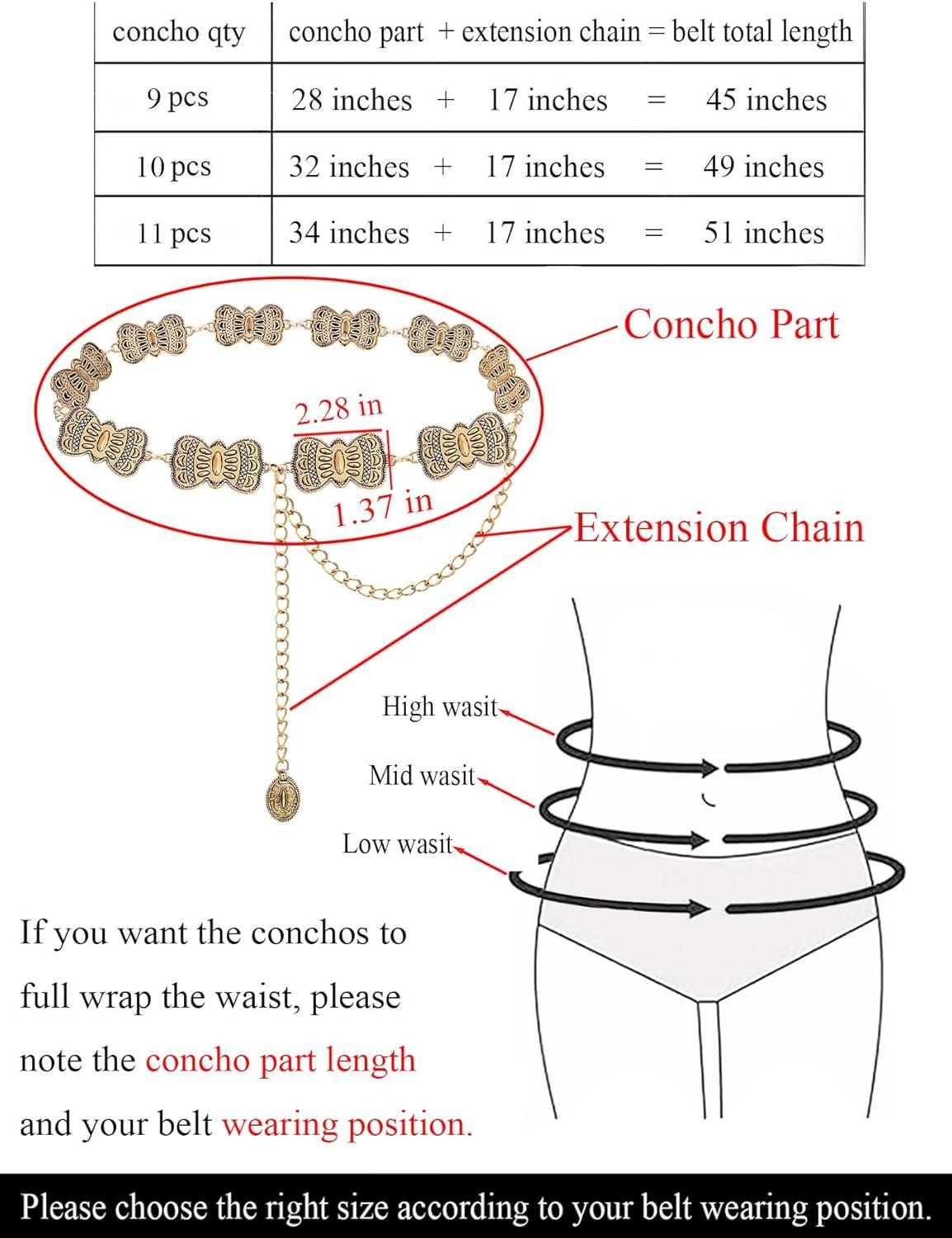 TOPACC Western Metal Concho Belt for Women Cowgirl Chain Belts for Dresses Jeans Country Concert Outfit(Champagne Gold-274)