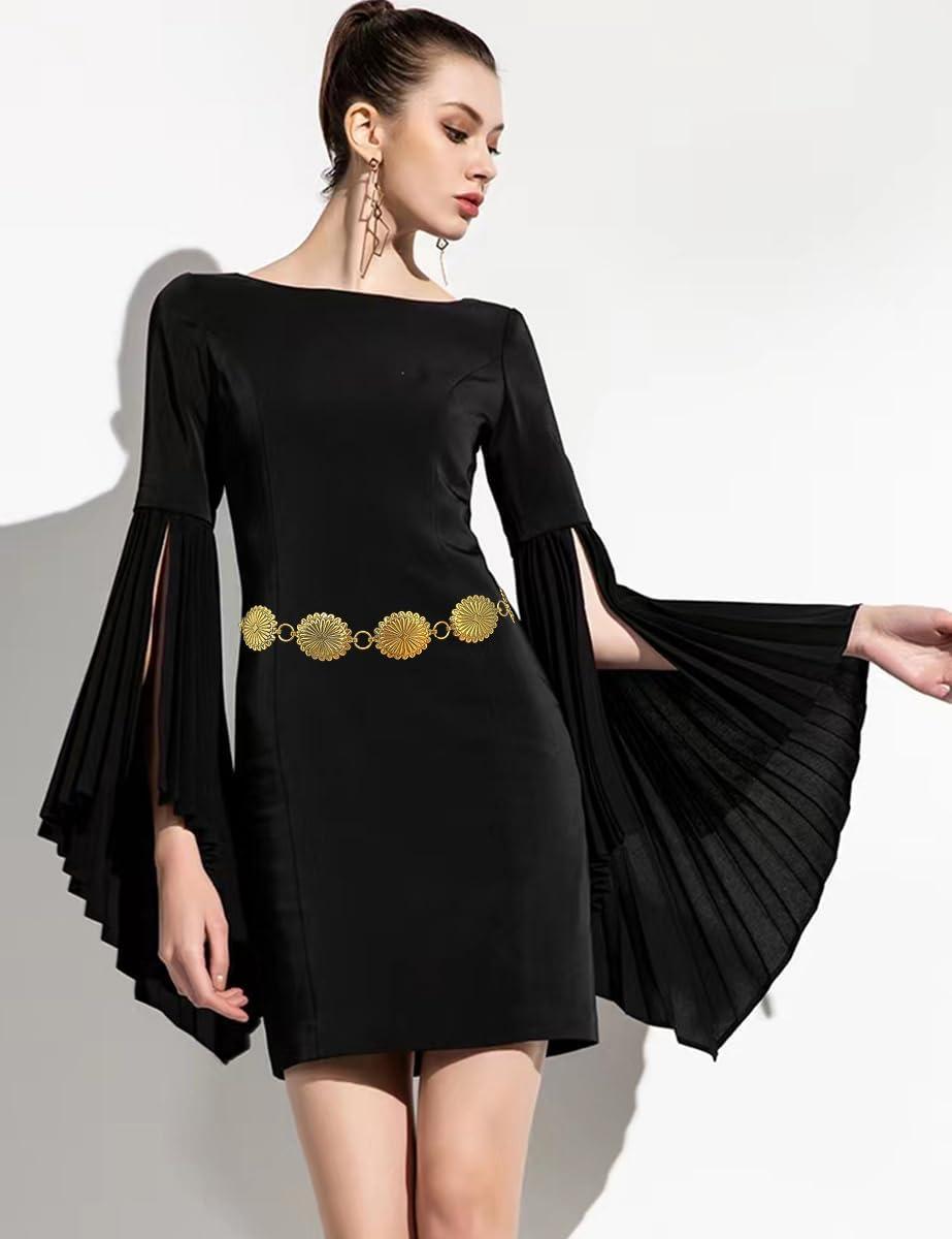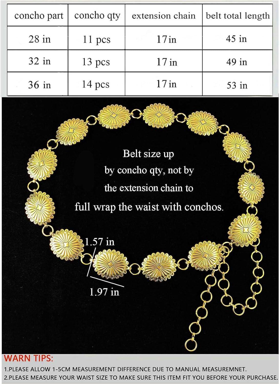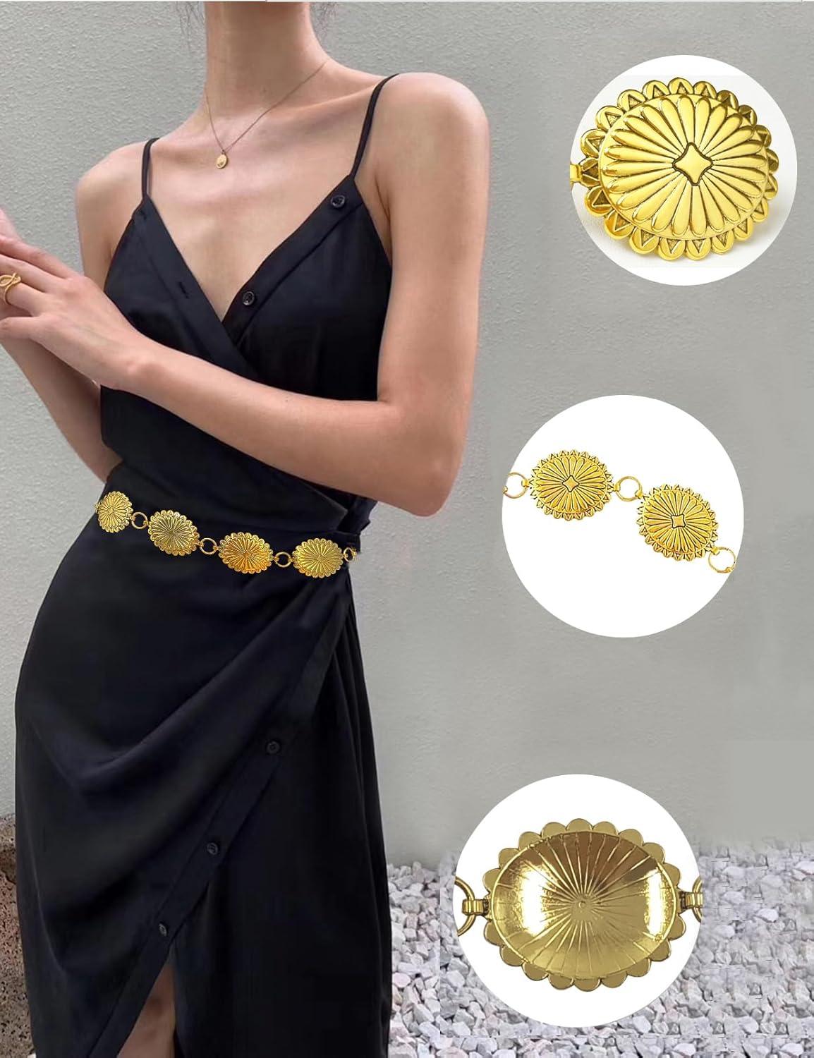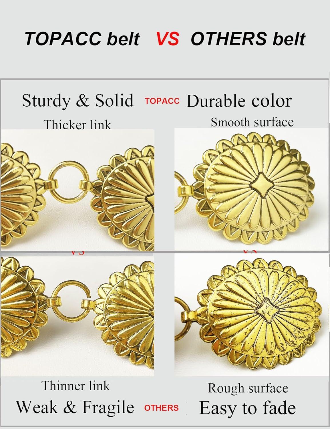 TOPACC Western Metal Concho Belt for Women Cowgirl Chain Belts for Dresses Jeans Country Concert Outfit(Yellow Gold-39)