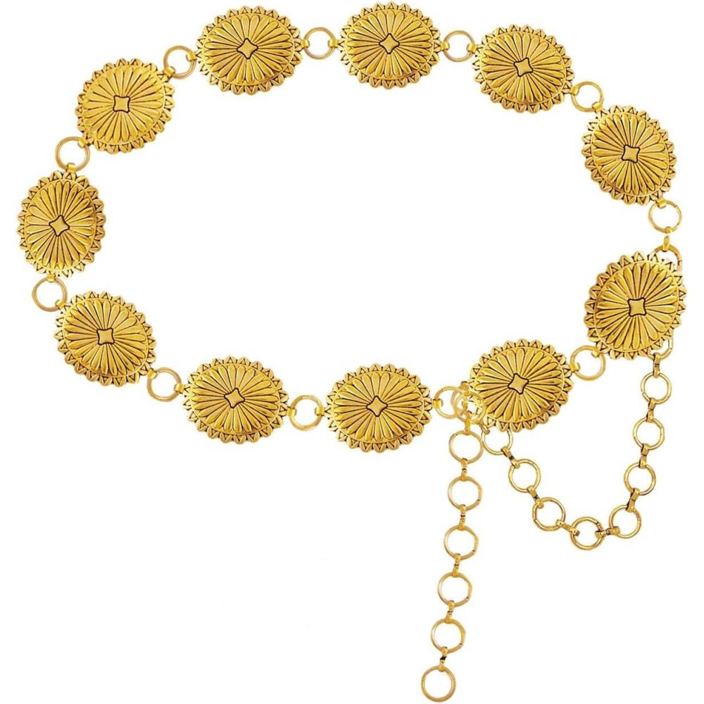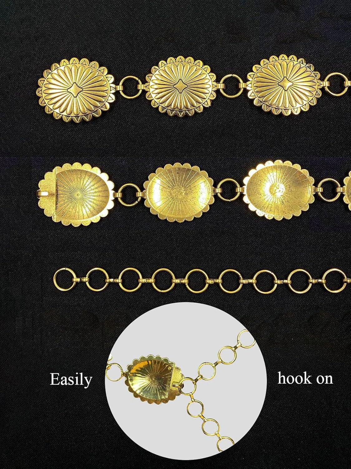 TOPACC Western Metal Concho Belt for Women Cowgirl Chain Belts for Dresses Jeans Country Concert Outfit(Yellow Gold-67)