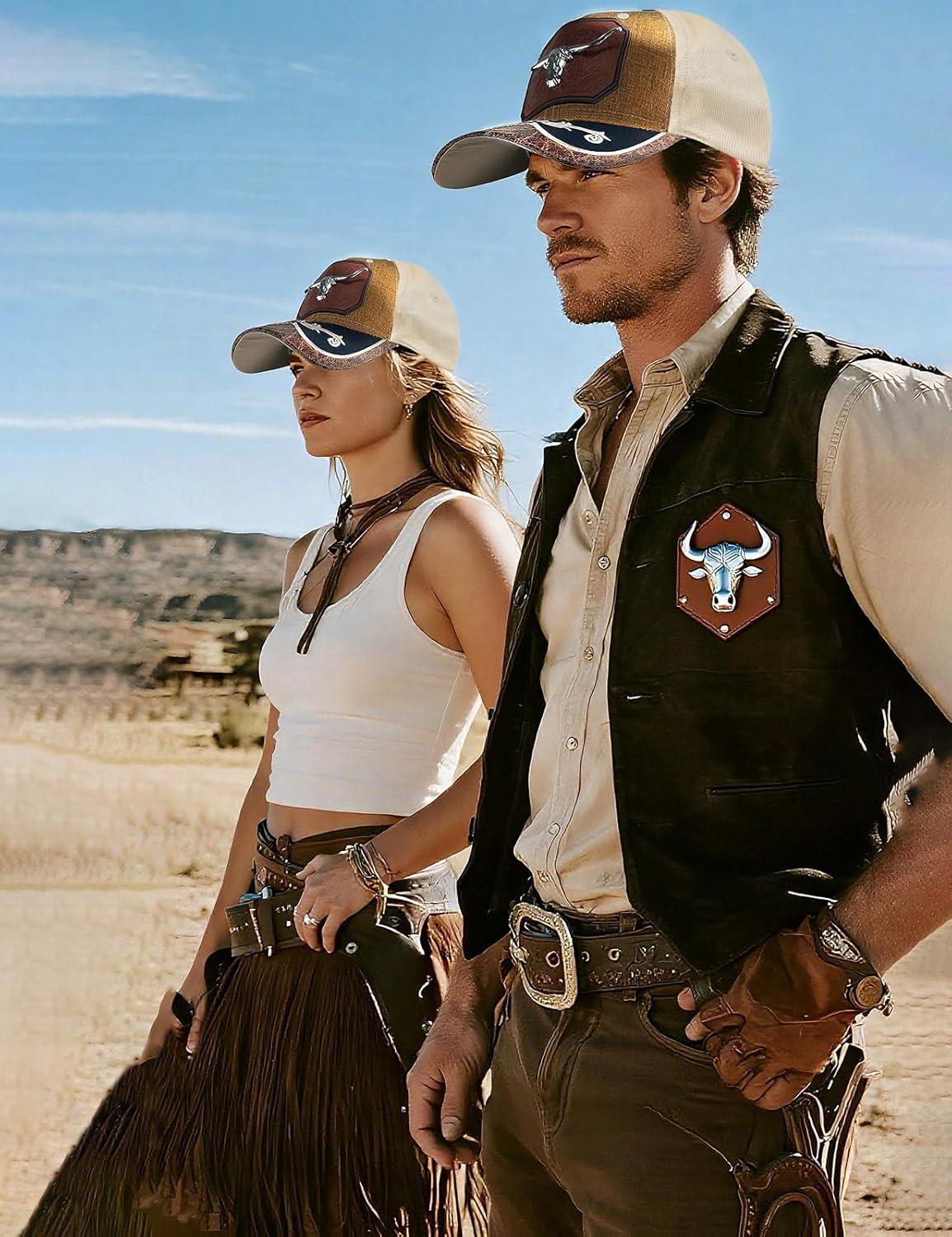TOPACC Western Trucker Hat for Men Women Vintage Cowboy Country Hats Cute Baseball Cap for Western Outfit(A Brown)